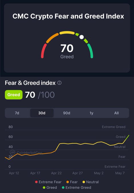 恐惧与贪婪指数在经历数月的恐惧区域后,现已正式转向"贪婪"!这是加密货币多头一直等待的情绪转变吗? 深入了解数据:coinmarketcap.com/charts/fear-...…