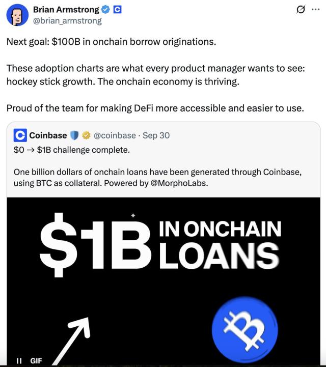 Coinbase 通过 Morpho 进行比特币抵押链上借贷,总额达到 10 亿镁