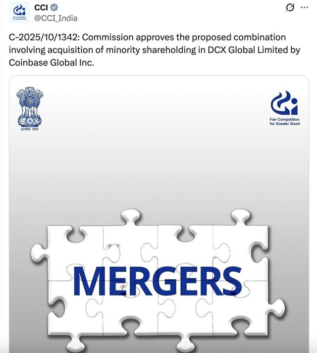 印度批准 Coinbase 收购 CoinDCX 交易所的股份。