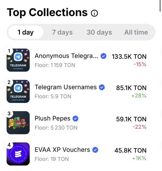 继续运营🎫 $EVAA 代金券需求旺盛。 Noir 代金券(分配 15 张 $EVAA)的 FP 已达到 20 张 $TON 的历史最高价 💎 按当前 $EVAA 价格计算,锁定在 NFT 中的代币价值是 NFT 本身的 2 倍! getgems.io/collection/EQD0iQuS...…