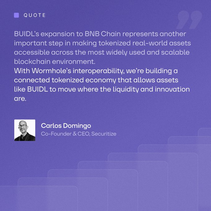 “像Buidl这样的资产需要流向流动性和创新力所在的地方。” — @carlosdomingo,@Securitize Buidl需要存在于多个链上,同时又不造成流动性分散。 Securitize 处理了令牌化。 Wormhole 处理原生互通性。