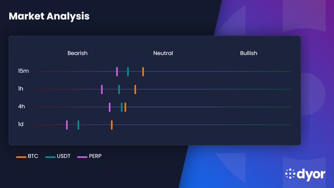 DYOR 市场扫描:短期反弹,但 4 小时至 1 天的市场情绪对BTC、 USDT和 PERP 而言都非常悲观。其他加密货币略弱于BTC。趋势依然下跌。🐻📉