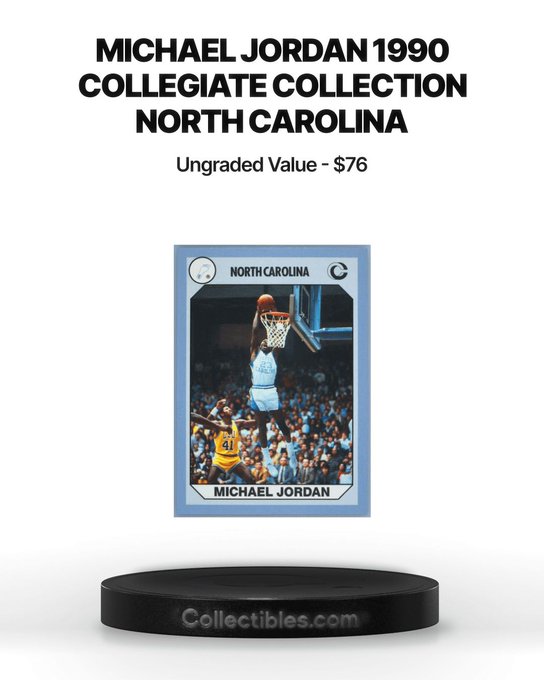 麦可乔丹(北卡罗来纳大学,1981-1984):早在成为芝加哥的「飞人」之前,他还是个大一新生,就投中了致胜跳投,帮助球队在1982年NCAA全国锦标赛中击败乔治城大学。这记投篮可以说是球星卡收藏界最有价值的「起源故事」!然而,在他转职为职业球员之前,他并没有NCAA球星卡,因为在他NCAA时期,球星卡产业正处于低迷期。也正因如此,收藏家们才会如此追捧1990年大学系列球星卡。