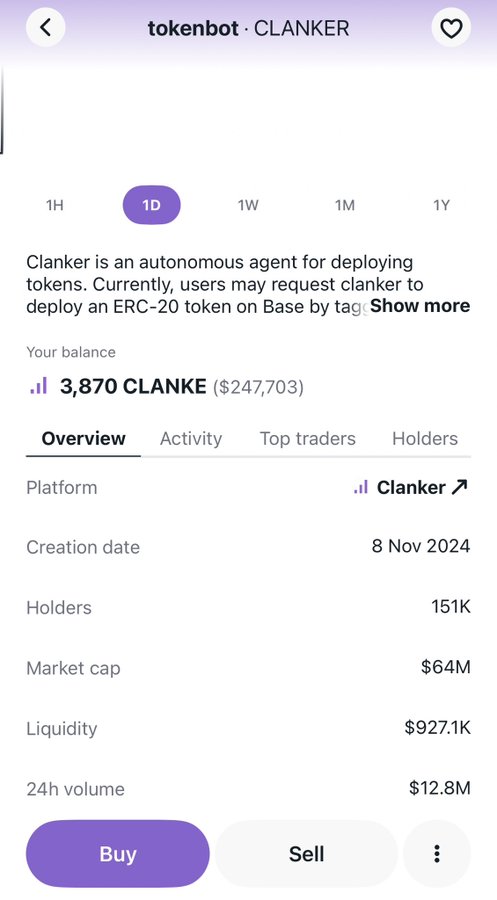 没人会真正谈论这件事,因为它本应是这个领域的标准——但通常并非如此。 @farcaster_xyz 收购 @clankeronbase 的消息是秘密进行的,并没有泄露给内部人士以抢先发布公告。 整个 $clanker 团队都展现了以正确方式构建的核心价值观,即使这往往是一个艰难的选择。 功劳归功劳👏