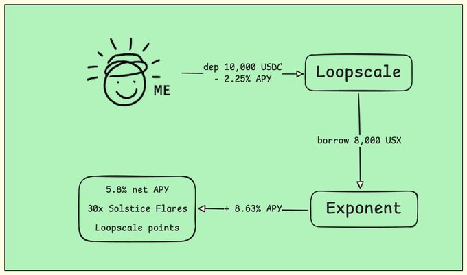 我认为@solsticefi 与 @Loopscale 的整合实际上意义重大。 如果管理得当,你可以构建一个不对称安全的 USX 持仓策略。 我玩的是以下这些游戏: 1/ 在 Loopscale 上存入 10k USDC 以 80% 的贷款价值比 (LTV) 借入 USX(最高 LTV 为 90%) → 借款 8k USX → 成本:2.25% 年利率 清算仅在以下情况下发生: 8k USX > 9k USDC → USX ≈ 1.125 美元 所以只有当 USX 的交易价格远高于基准价格时,你才会被强制平仓。 ------------ 2/ 正确考虑风险 对于收益稳定的股票而言,真正的风险是下行脱钩,而不是上行脱钩。 – 如果 USX 价格高于 1 美元 → 只需换回USDC并重新平衡即可 – 如果 USX 股价低于 1 美元 → 你不会被强制清算 您可以偿还更便宜的 USX 贷款 → 解锁全部USDC抵押品 → 下行脱钩实际上有利于借款人。 ------------ 3/部署借用的USX 在 @ExponentFinance 上提供 USX → 年利率 8.63% → 30倍夏至耀斑 → Loopscale 点 传播数学: 8.63% − (2.25% / 0.8) ≈ ~5.8% 净年收益率 以 1 万美元USDC为基础,加上 30 倍的Flare点风险敞口。 ------------ 那么你能得到什么? – 净年收益率约为 5.8% – 30倍Flare倍率 → $SLX 空投 – Loopscale积分→空投 ------------ 这种交易的妙处在于,如果 USX 指数下跌,结构上你不会有任何损失,偿还成本也会更低。 现在轮到你了👇🏻 Loopscale: loop.sl/i/xgABe 至日:app.solstice.finance/earn-flar... | 代码:9oBM8kSg42 指数:exponent.finance/liquidity/usx...…