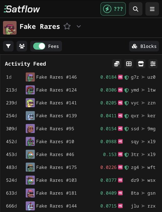 @Satflow 现在显示了所有销售历史记录,您可以在这里看到,假稀有物品在二级市场的历史最高售价为 0.153BTC。 几天前,我们看到一位传奇人物以0.018 BTC的低价入场,而Magic Eden的崩盘吓坏了一些人,但也让一些人做出了历史性的举动🐸 收藏家永远都会收藏,17k以下价位的铭文只会随着时间的推移而更具吸引力🟧 @SCR_btc