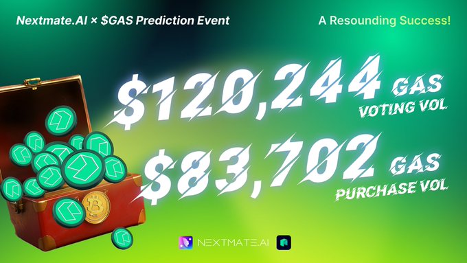 🎉大新闻! #NextmateAI x @Neo_Blockchain 预测活动圆满结束! 查看结果: 📊 投票量:价值 120,244 美元的 GAS 💸 购买量:83,702 美元 GAS 感谢所有参与者!敬请期待更多精彩活动和奖励! 🙌 twitter.com/nextmate_ai/status...