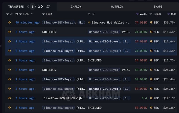 该实体刚刚解除对另外 74K $ZEC(3500 万美元)的屏蔽,并将其发送到币安。 twitter.com/emmettgallic/statu...