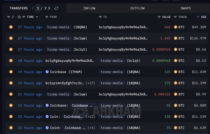 Trump Media 从 Coinbase 撤回了剩余的 300 $BTC,并将 2k $BTC 转移到了新地址 intel.arkm.com/explorer/addres...… twitter.com/emmettgallic/statu...