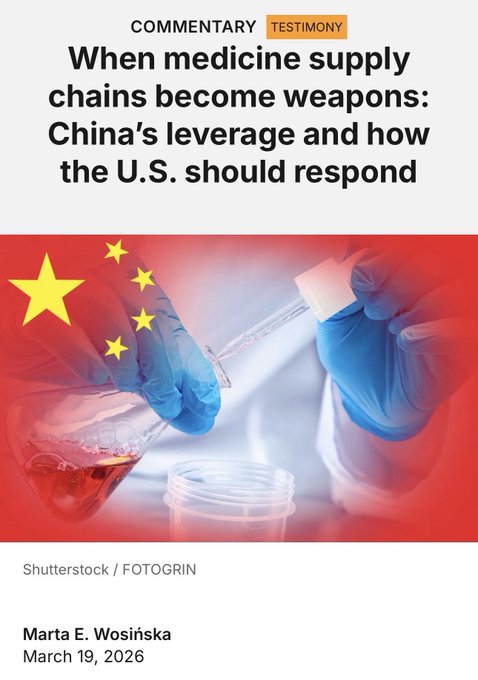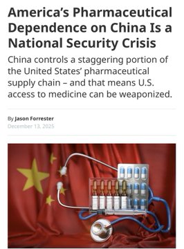 这并非关乎药品监管,而是关乎敌对外国势力是否有能力通过控制关键药品成分来削弱美国军方的战备能力。 目前,答案是肯定的。中国的法律恰恰授权了这种做法。而美国食品药品监督管理局(FDA)非但没有减少这种风险,反而通过批准像中国制药(Sinopep)这样与中共有关联的供应商来扩大风险。 一家与间谍活动有牵连且曾被定罪的公司。@SecKennedy,这需要立即采取行动。 twitter.com/WallStreetMav/stat...