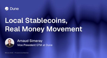 最新消息:Dune 与 Visa 合作推出本地稳定币报告,重点关注全球 200 多种非美元支持的稳定币的增长情况。 此次发布还附带目前最全面的机构级稳定币数据集,该数据集由 Dune 与 SteakhouseFi 合作构建。 专为企业团队设计,可扩展。