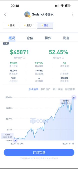 之前一直在微博记录自己的日常,X玩儿的不多,可能很多朋友不认识我,下面就马得水投资经历做个回顾。 投资经历: 践行三倍杠杠低倍复利策略 1万R-5000万R 币安带单90日盈利超250万美金,资金管理规模628万美金,全程三倍杠杠。 后遭遇滑铁卢账户资金回撤1000多万后提现保命,经过一年的沉淀目前已经适应当前的资金水平,目前正在全力恢复巅峰状态向A9进攻。后续会逐步在X给大家分享一些投资心得以及记录自己的交易日常。