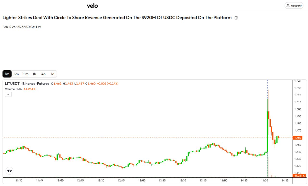 Lighter 已与 Circle 签署协议,双方将共享平台上约 9.2 亿美元 USDC 存款所产生的收益。 简而言之: Lighter 是一个 Perf DEX 平台。 Circle 是 USDC 的发行方。 约 9.2 亿美元的 USDC 已存入 Lighter 平台。 这些 USDC 产生的利息由 Circle 和 Lighter 共享。 USDC 储备投资于美国国债等安全资产,从而产生利息。虽然 Circle 通常会获得这些利息,但协议的关键在于,部分收益将与 Lighter 分享。 其影响如下: 首先,Lighter 现在拥有基于存款的收入模式,而不再仅依赖交易手续费。 其次,随著平台总锁定价值 (TVL) 的增加,Lighter 的收益也将增加。 第三,这有可能与代币价值建立长期连结。 图表价格的飙升反映了市场预期,即此消息将进一步提升 Lighter 的收入结构。 简而言之, Lighter 已与 Circle 达成协议,共享 USDC 存款产生的利息,这被解释为该平台获得了可持续的收入模式。