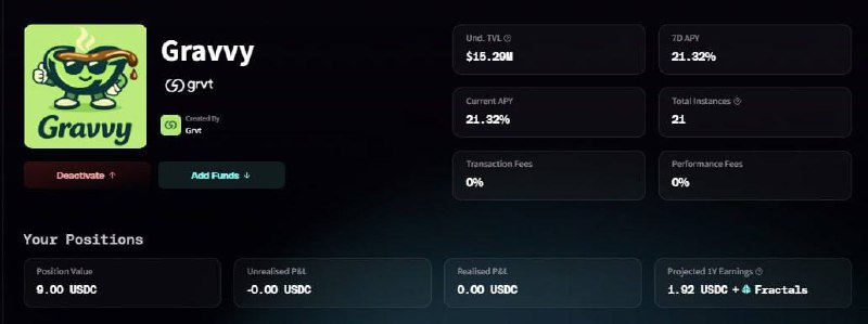 😎Grvt GLP Vault 存款现已在 Fraction AI 上线。 fractionai.xyz/dapp/stable-up/... Gravvy 是 Stable-Up 上的一个代理,它与 grvt 集成,提供 21.32% 的年化收益率 (APY)。 这与 grvt 上 GLP 存款的利率相似。 🟢 无需注册单独的 Grvt 账户。 🟢 您将从 Fraction AI 获得 Fractals 积分,而不是 grvt 积分。 🟢 使用 USDC(基础货币)进行存款。 这是一个与 Fraction 和 grvt 原生集成的全新代理。名额有限,先到先得!请注意,错过 GLP 存款上限的用户也有机会! x.com/FractionAI_xyz/status/20...