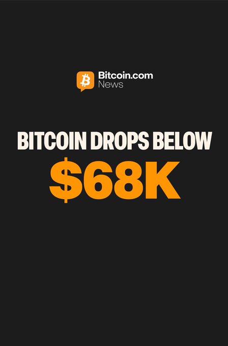 最新消息:🔻 #比特币 短暂跌破 68,000 美元