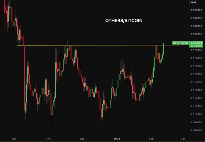 ALT/ BTC已回升至 10 月 10 日暴跌水平之上,而比特币下跌了 40%。 BTC的下跌幅度比山寨币更大。
