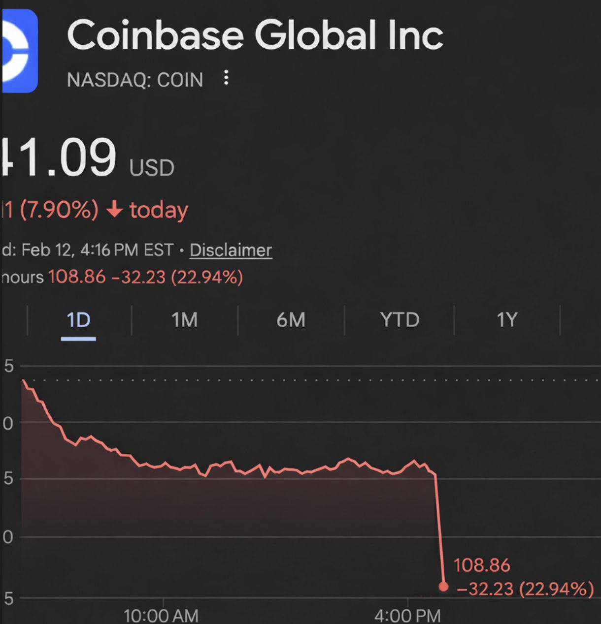 😱 今天早上早早醒来就得知了 Coinbase 灾难的消息。 Coinbase下挫第四季度财报告后,股价下降超过20%,跌幅显著。 有报道称,自 2025 年 4 月以来,首席执行官 Brian Armstrong 已出售了 150 万股股票(约 5.5 亿美元)。 Coinbase 已暂时停止交易、提取和用户转账服务。 @margintradingTCVN