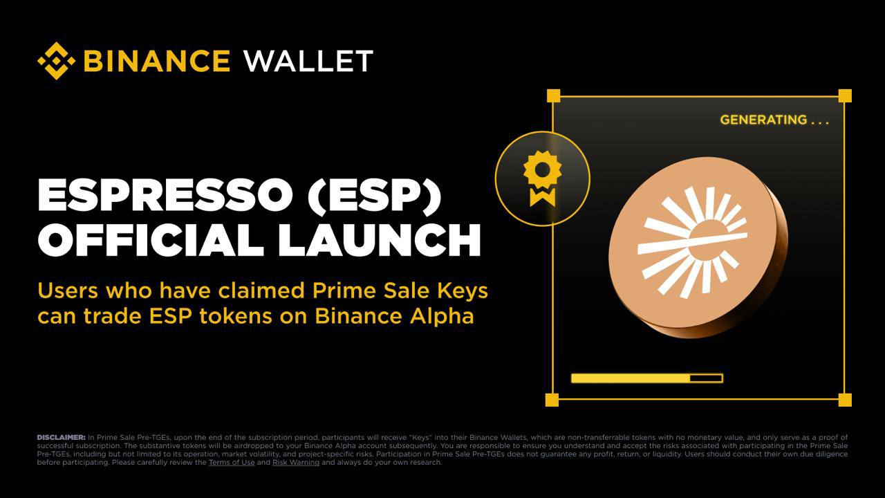 币安列表 Espresso ⏰Thời gian : 20h ngày 12/2 ⚙️Cặp giao dịch : ESP/ USDT, ESP/ USDC, ESP/TRY Espresso智能合约: 以太坊 (0x031de51f3e8016514bd0963d0b2ab825a591db9a) 仲裁 (0x3b8db18e69d6686ad9371a423afe3dd1065c94f1)