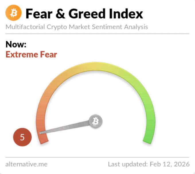 加密货币恐惧与贪婪指数刚刚暴跌至 5 级“极度恐惧” 这是有史以来的最低水平。 我看到越来越多的底部信号 😎