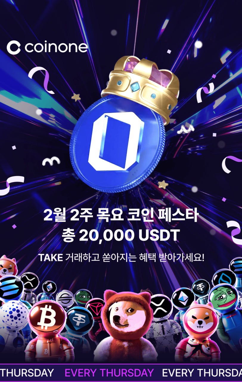 1️⃣2️⃣3️⃣4️⃣5️⃣ ⭐️🔵Coinone [二月第二周周四币币盛典] 总计 20,000 USDT 活动 🌟 [参与时间] 2月12日(周四)~ 2月15日(周日) [参与方式] 1. 使用合作伙伴链接注册(可选) 推荐码 🔗 F4FKSM6U 2. 活动期间输入活动代码。 活动代码 🔗 2602FESTA2 3. 活动期间在 TAKE 交易中交易超过 50,000 韩元(不含手续费)。 【参与奖励】总计 5,000 USDT(所有参与者均等分配) + 15,000 USDT(交易量排名前 100 的用户将获得额外奖励) 【支付时间】2 月 23 日(星期一) ※ 查看更多