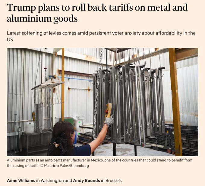 特朗普正计划削减部分钢铁和铝制品关税,以应对美国民众的生活成本危机,而这一危机已在11月中期选举前拖累其支持率。 美国政府目前正在审查受征税影响的产品清单,并计划豁免一些商品,停止扩大清单,转而对特定商品展开更有针对性的国家安全调查。 根据皮尤研究中心本月公布的一项民意调查 ,超过 70%的美国成年人认为美国经济状况一般或较差。约 52%的美国人认为特朗普的经济政策使经济状况恶化。