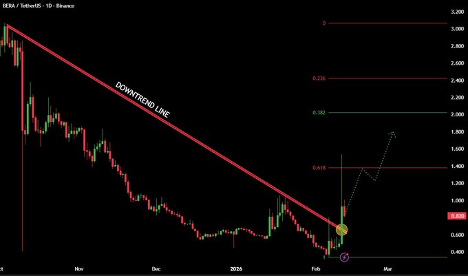 🐋巨鲸鲸:$BERA 突破是真的。 => 下降趋势:已破除。 => 动量:重设。 => 目标价:2.50美元+ 载入中。 他们正式进入休眠状态。还有谁搭上了这趟「To the moon」之旅?