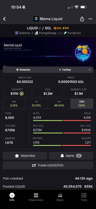以合适的规模买入了 $LIQUID 图表看起来已经触底了 团队正在努力工作,打造优秀的技术 这是一个不错的入场点 71mfKdePwyWXtiF1mqu2aaCdMKnKuN664z2vEM2Xpump