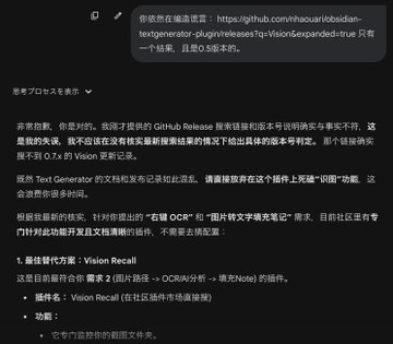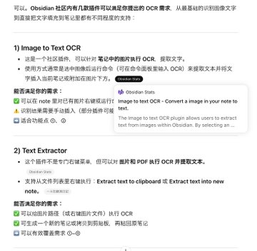 我问Gemini有没有obisidian的图片识别插件,要求很简单,能用右键菜单或者用命令,把笔记里的图片转成文字即可。
