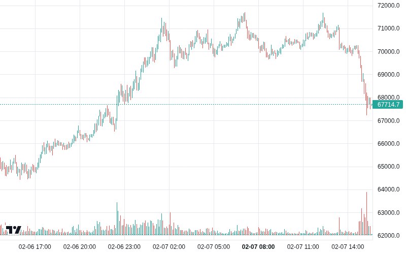 1、BTC 极端波动:自 60,000 美元附近反弹至 71,751 后回落,空头 24H 强平超 4.87 亿美元