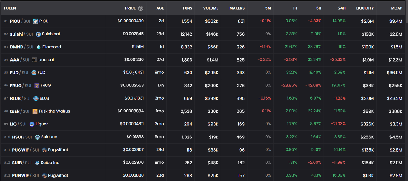 適逢市場復甦,Meme 板塊也不再是承接溢出流動性的“接盤俠”,而是吸引諸多資金首選的財富熱土。當然,表現優異的 Sui 生態也自然而然承接了相當一部分 Meme 板塊的熱度:$BLUB、$FUD、$AAA..... 各種“水系” Meme 層出不窮,帶來一波又一波財富效應。
