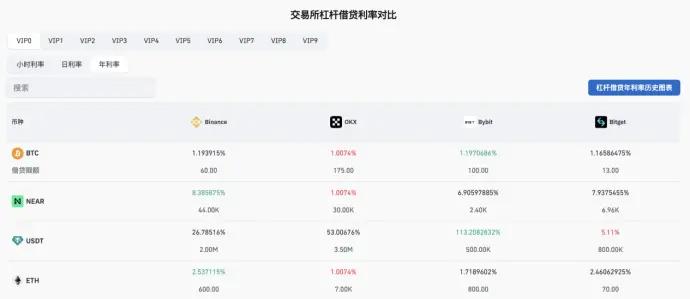 加密貨幣交易中,槓桿借款利率和額度對於交易成本和資金靈活性有著直接的影響。通過 Coinglass 11月14日實時數據顯示,OKX 槓桿借款利率和額度優勢明顯,目前,OKX 在 BTC、USDT 和 ETH 等主流資產的槓桿借款條件上表現出較強競爭力。