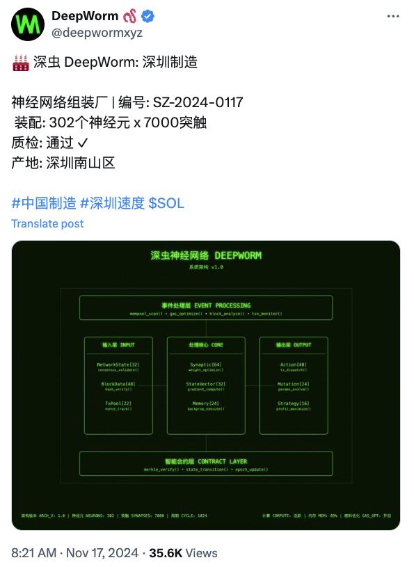 值得注意的是,DeepWorm 官方 X 賬號曾發佈「深蟲 DeepWorm: 深圳製造」的中文帖子,疑似為國人團隊項目。