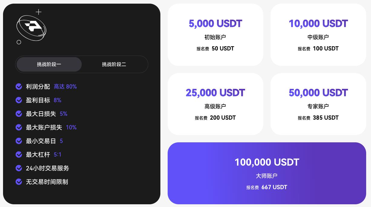 PropW 為平臺交易員開發了獨特的評估流程,完成挑戰或符合條件的交易員可以管理平臺資金進行交易,為個人交易消除了一定的財務風險,同時最大化了用戶的交易潛力(最高利潤分配達 90% ),實現平臺和用戶之間的雙贏。