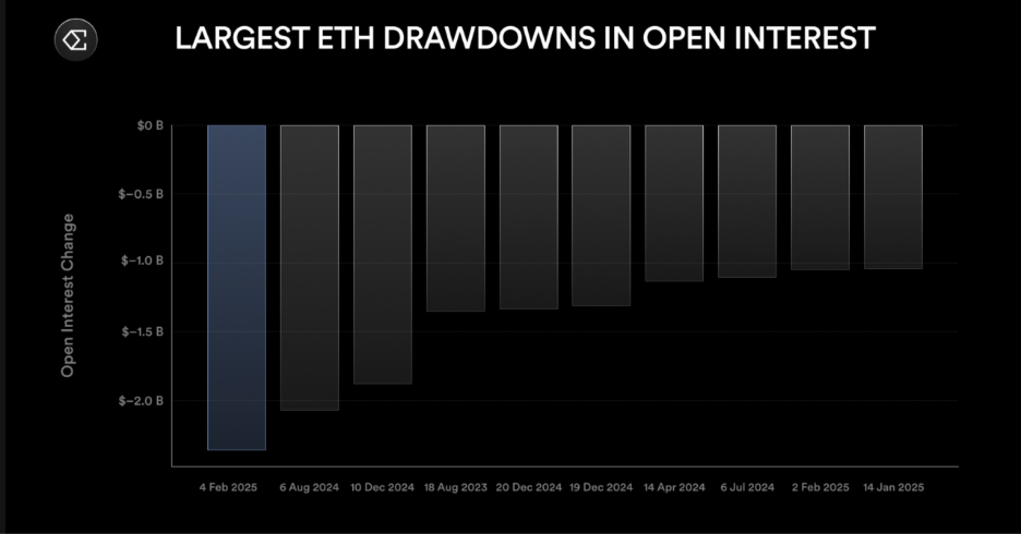 一週內,ETH未平倉合約減少超過50億美元,周跌幅超過25%。