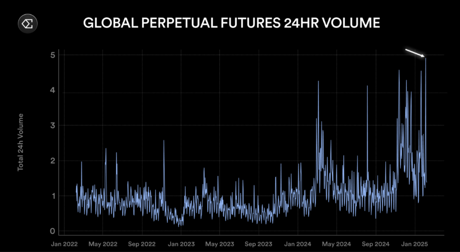 劇烈的拋售導致永續合約市場創下24小時交易量最高紀錄。