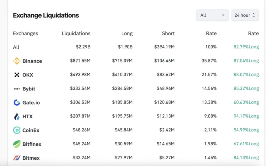 正如Bybit創始人兼CEO在拋售後發佈的推文所說,僅Bybit就造成了21億美元的爆倉,而Coinglass報告的數據僅為3.33億美元。