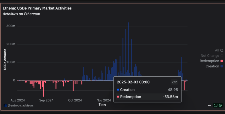 一級市場,24小時內處理了5000萬美元的USDe贖回,沒有任何問題。二級USDe市場24小時交易量超過3.5億美元,USDe價格與USDT價差保持在10個基點以內。