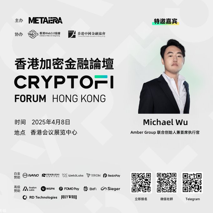 🌟Amber Group 首席執行官 Michael Wu 先生確認出席 4 月 8 日第三屆香港加密金融論壇🌟 @ambergroup_io 聯合創始人兼首席執行官 Michael Wu @MichaelWuAmber 先生確認出席將於 2025 年 4 月 8 日在香港會議展覽中心舉行的第三屆 #香港加密金融論壇,並參與圓桌。 🔗