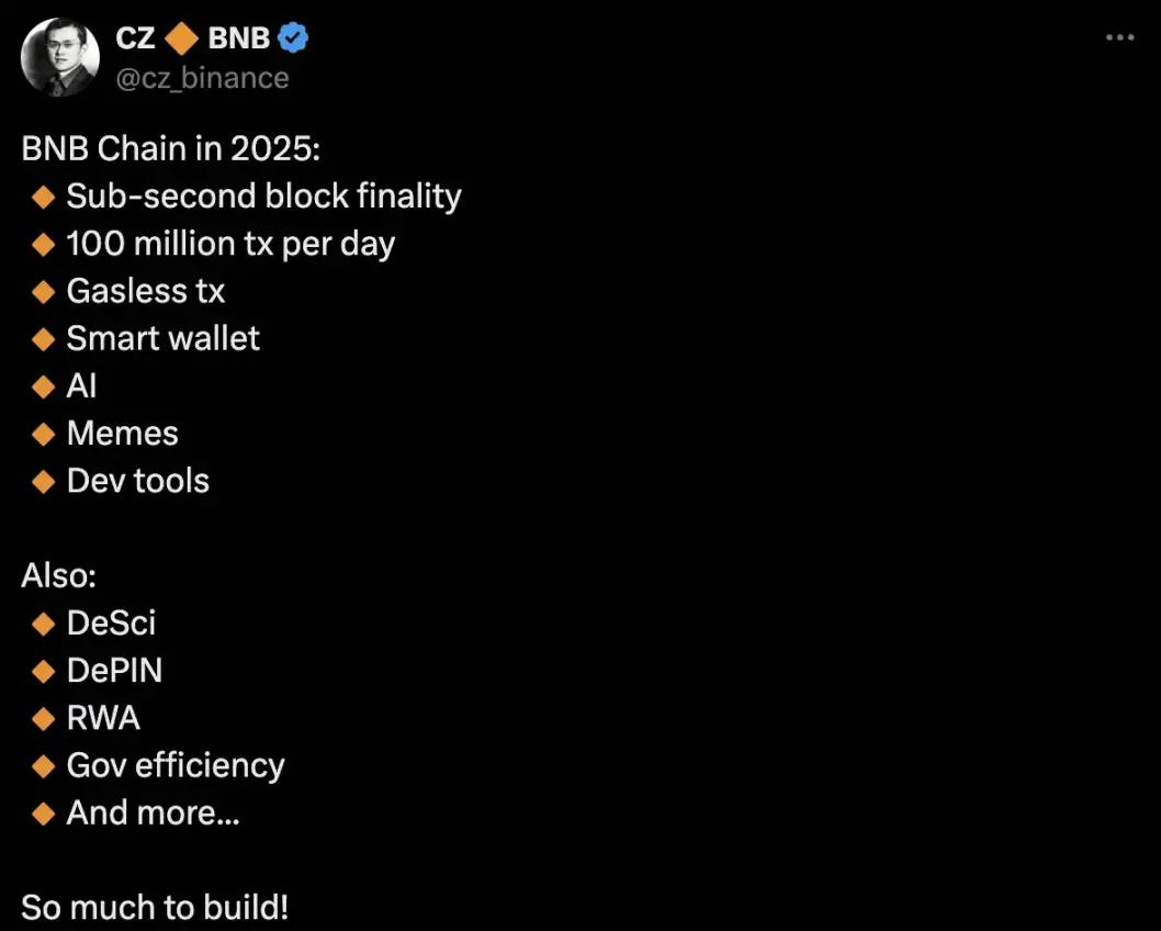 對於 BSC 這一輪熱度是否還能延續,還需要觀察市場的反應。而注意力和流動性如果能夠延續而產生慣性。根據「首席實習生」CZ 羅列的 2025 年 BNB Chain 計劃,AI 大概率會佔更大的資源比重,而之前引發熱潮的 DeSci 也有很大可能性會在 BSC 迴歸。關於 BSC,律動 BlockBeats 將持續跟隨其下一步的動向。