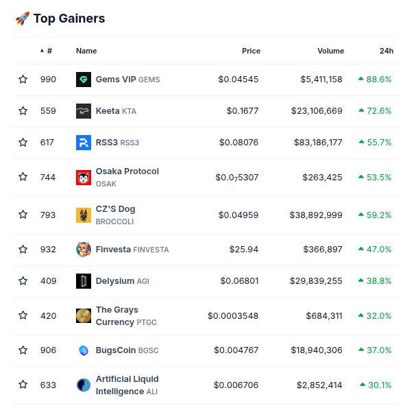 (來自 @coingecko 前1000名,按24小時漲幅排序)