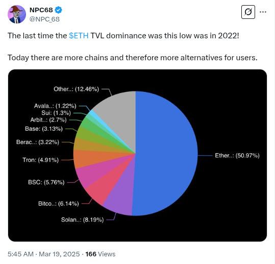 -ETH主網TVL份額創2021年以來新低,也是h/t @NPC_68: