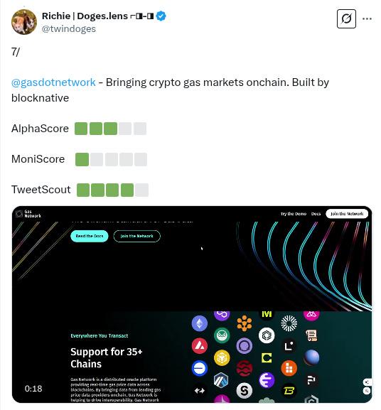 -一個叫 @gasdotnetwork 的新東西。Twitter簡介稱"將加密貨幣gas市場帶到鏈上。由 @blocknative 構建 ⛽"。被4個我們的關注者關注。h/t @twindoges: