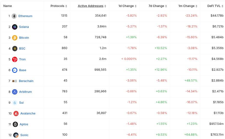 以下是TVL前12位的鏈條 (來自 @DefiLlama):