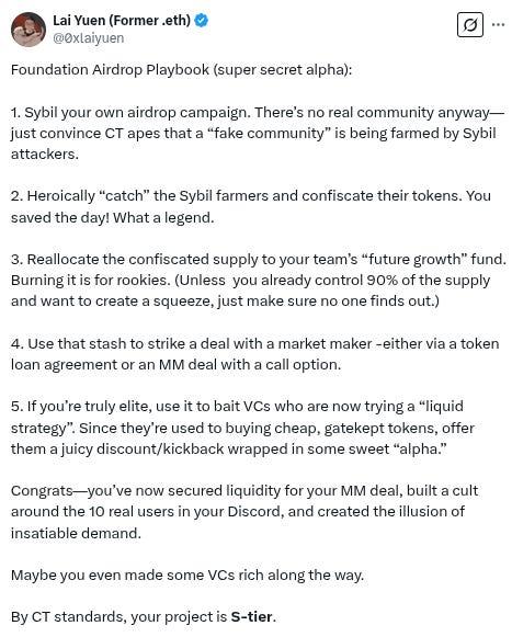 -來自@0xlaiyuen的重要提醒,關於空投可能發生的一些不太健康的事情: