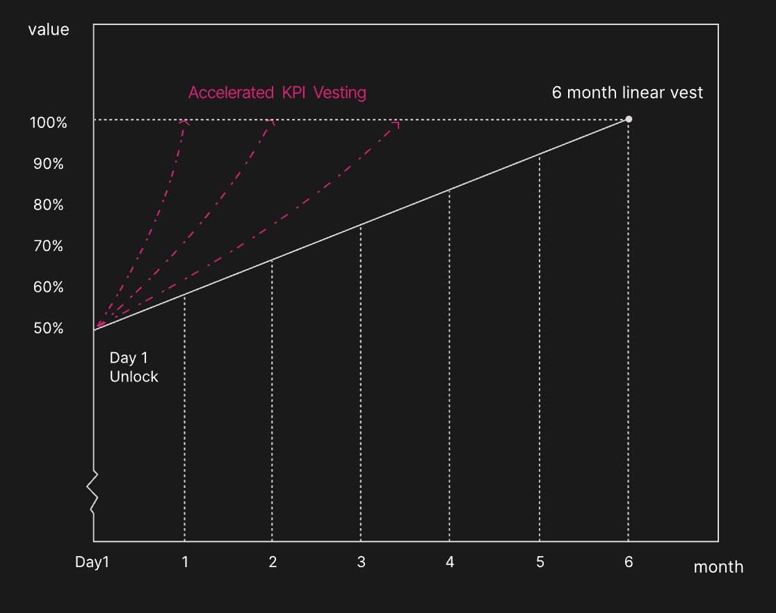 MegaETH 官方發行的 1 萬個靈魂綁定 NFT——「The Fluffle」,具備獨特的動態調整機制。每個 NFT 依據用戶的不同活動情況,劃分為多個可進化階段,階段等級越高,持有者能獲得的獎勵越豐厚。「The Fluffle」發行時,部分 NFT 通過免費空投發放,其餘則以每個 1 ETH 的價格出售。該系列 NFT 代表著至少 5% 的 MegaETH 網絡所有權。通過這種方式分配的代幣,將在 TGE 時釋放 50%,剩餘 50% 在 6 個月內按線性方式逐步釋放。值得一提的是,若用戶達成特定 KPI,還能加快代幣的釋放速度。因此,持有「The Fluffle」NFT 的用戶,為了獲取更多或更快釋放的獎勵,有必要與 MegaETH 網絡進行更多交互。
