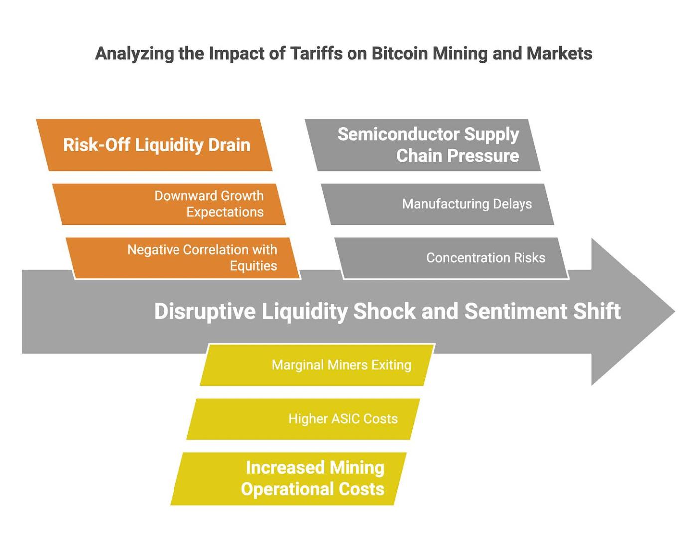 半導體供應鏈壓力: 針對關鍵芯片零件的關稅,擾亂下一代挖礦硬件的生產,可能延遲算力擴張,加劇礦業中心的集中度風險。