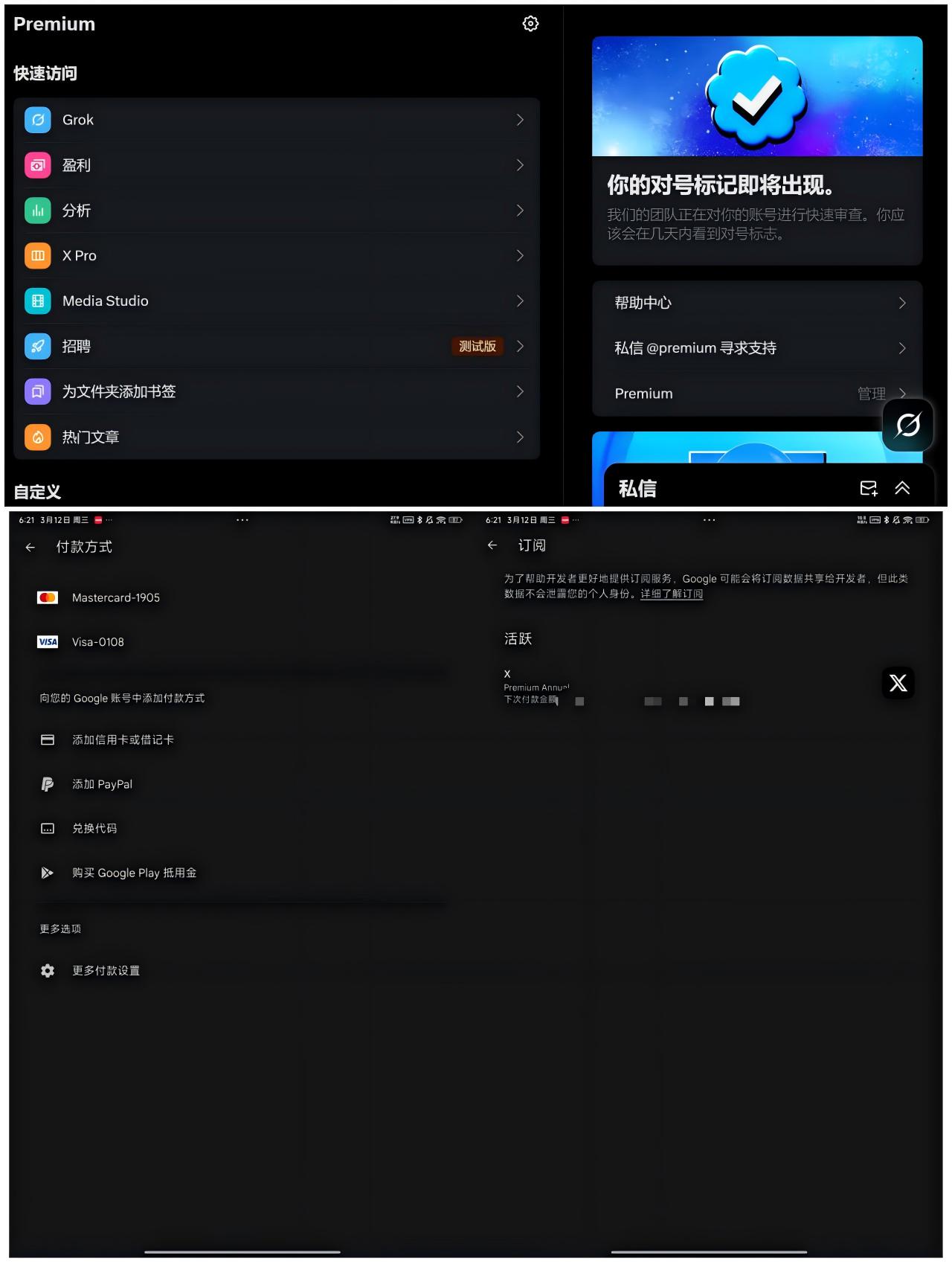 實測通過上述方式,就可以繞過傳統支付渠道的限制,順利完成 𝕏 藍標的訂閱。