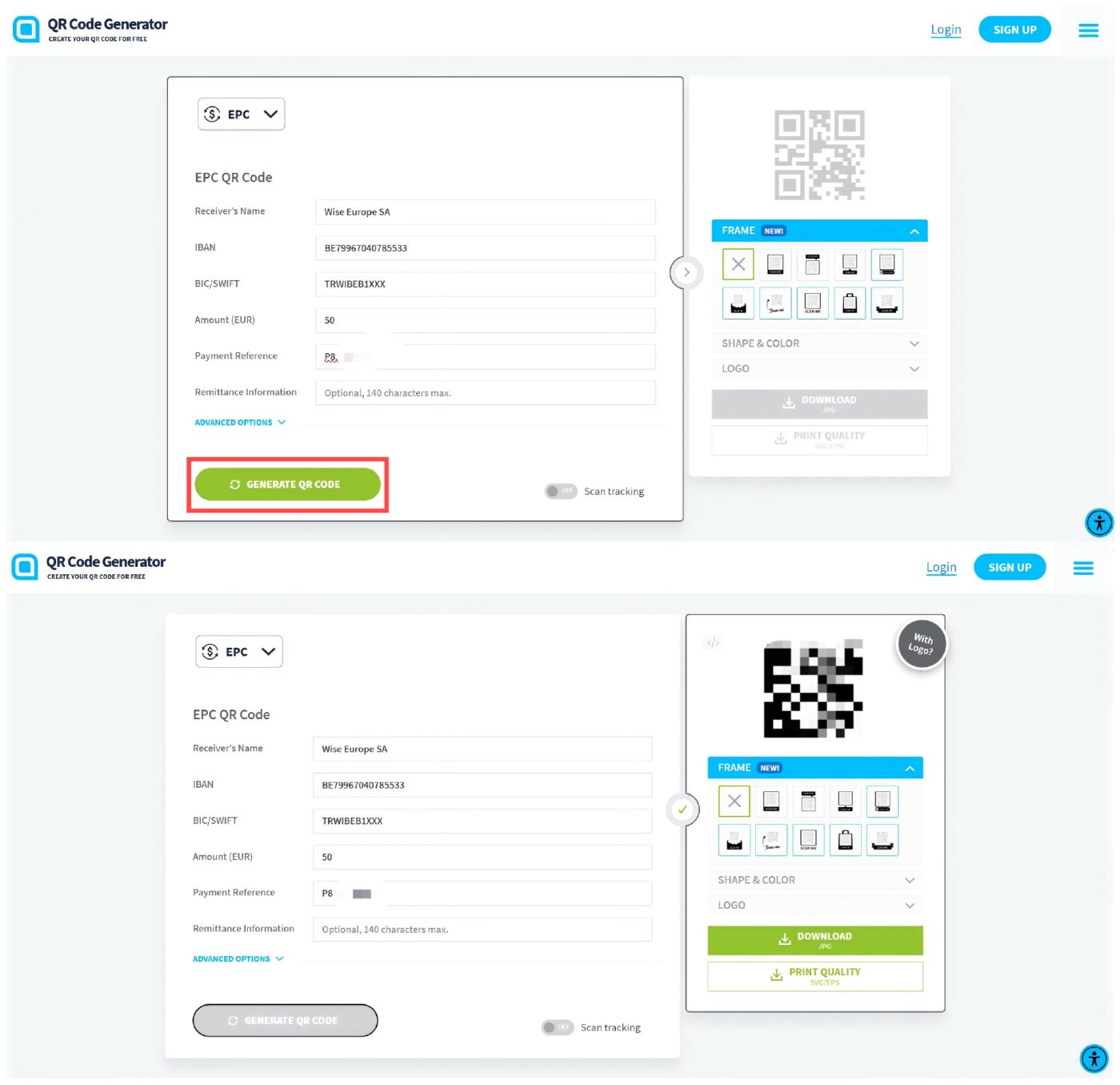 隨後點擊左下方的「GENERATE QR CODE」,生成轉賬二維碼。