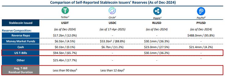 國債市場:國債需求的整體增加,穩定幣立法中的儲備要求將為國債提供額外且不斷增長的需求來源;國債持有期限的整體前移,立法要求穩定幣發行者持有期限小於 93 天的國庫券,導致國債持有集中於短期。