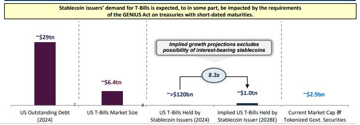 美國《GENIUS 法案》對短期國債的要求可能進一步推動穩定幣發行方對 T-Bills 的配置。